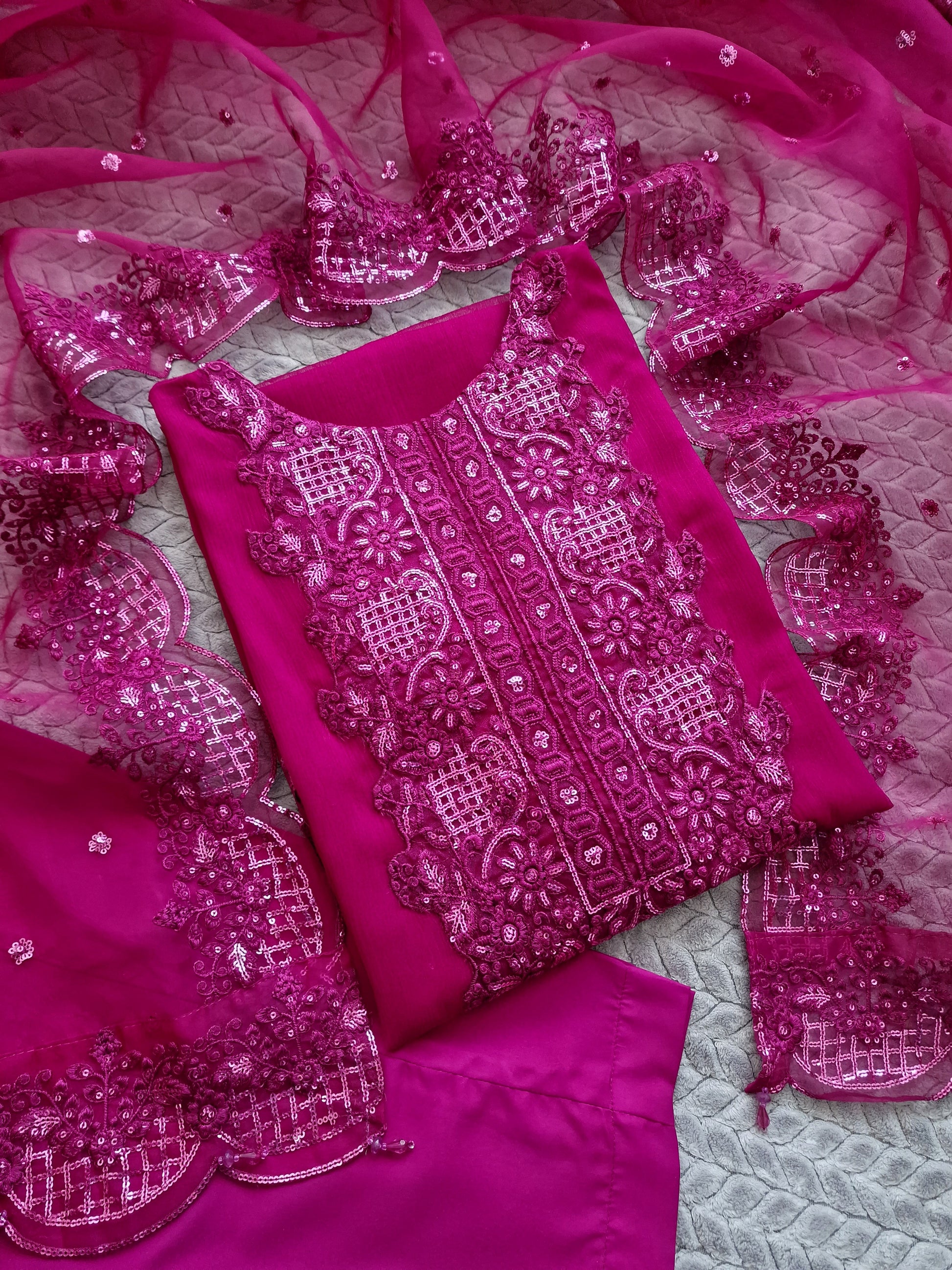 *Embroidered Organza dupatta with stone detailing