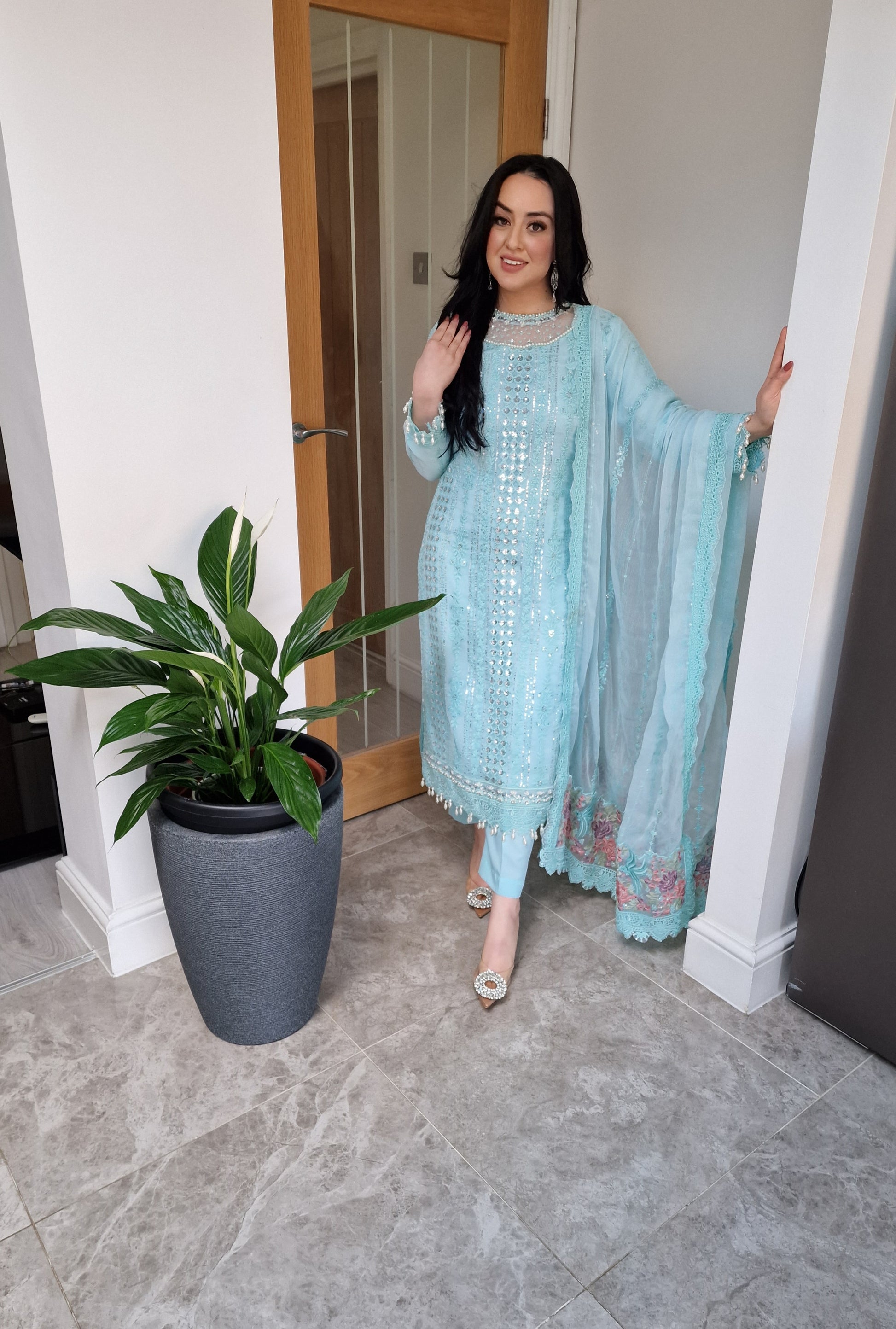 *Embroidered Organza neckline with Pearl/stone work